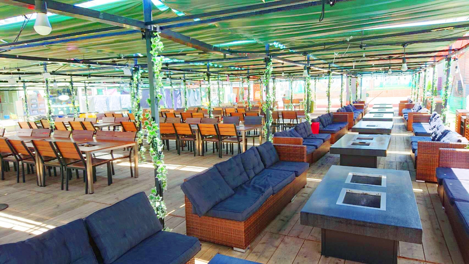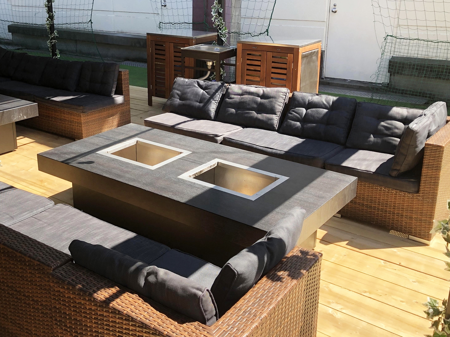 聖蹟桜ヶ丘駅の真上でBBQ。ソファー席でのBBQは非日常感UP。 食材ドリンクは駅の京王ストアでも買えて便利。駅直結で、面倒な機材の準備や火おこし不要、好みの食材・飲み物持ち込みOK。 ラグジュアリー感を感じられるソファー席もあり、ちょっぴり贅沢なBBQ体験を。雨除けも完備。