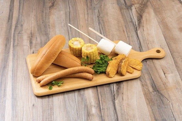 ホットドッグセット(ケチャップ付き) 1セット / ポテト 50g / カットコーン 1個 / 棒付マシュマロ 1個 ※写真は2人前