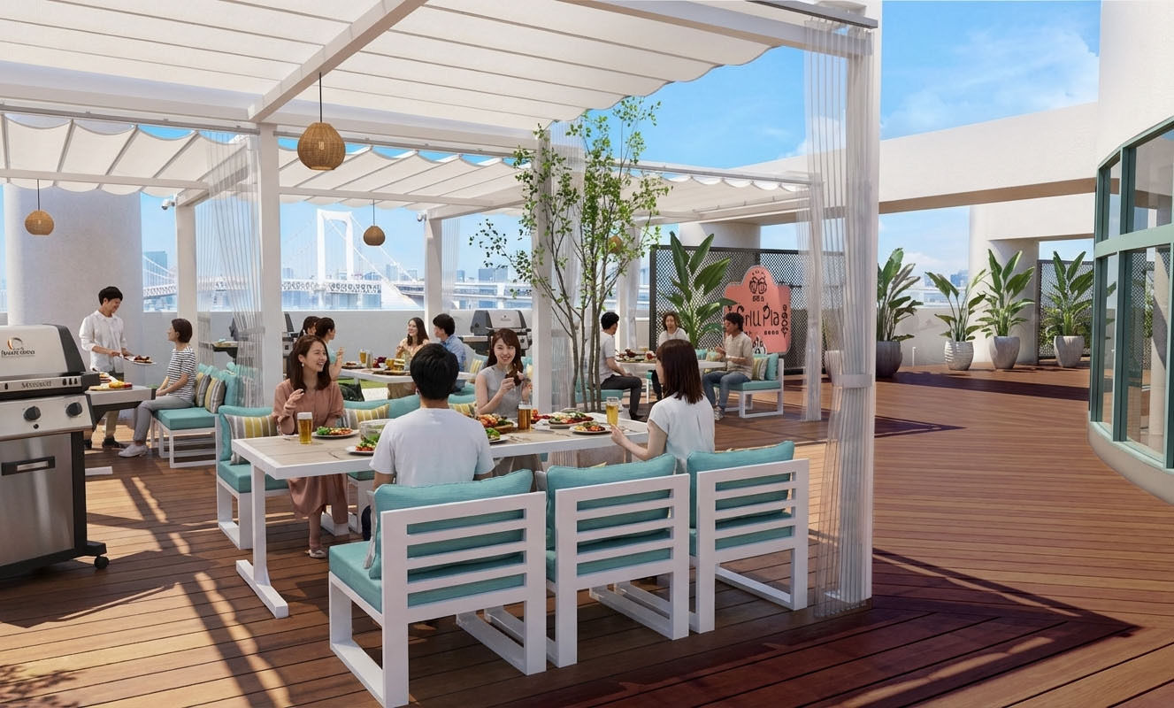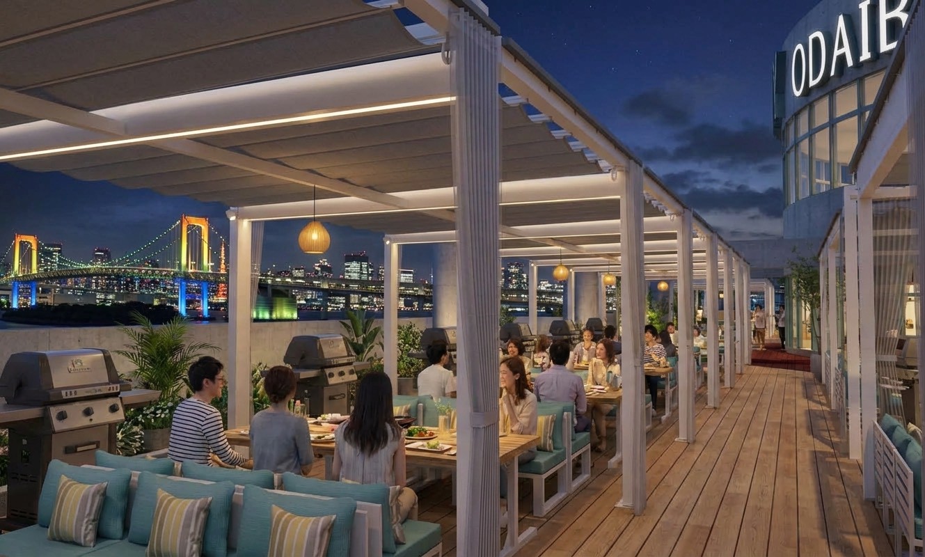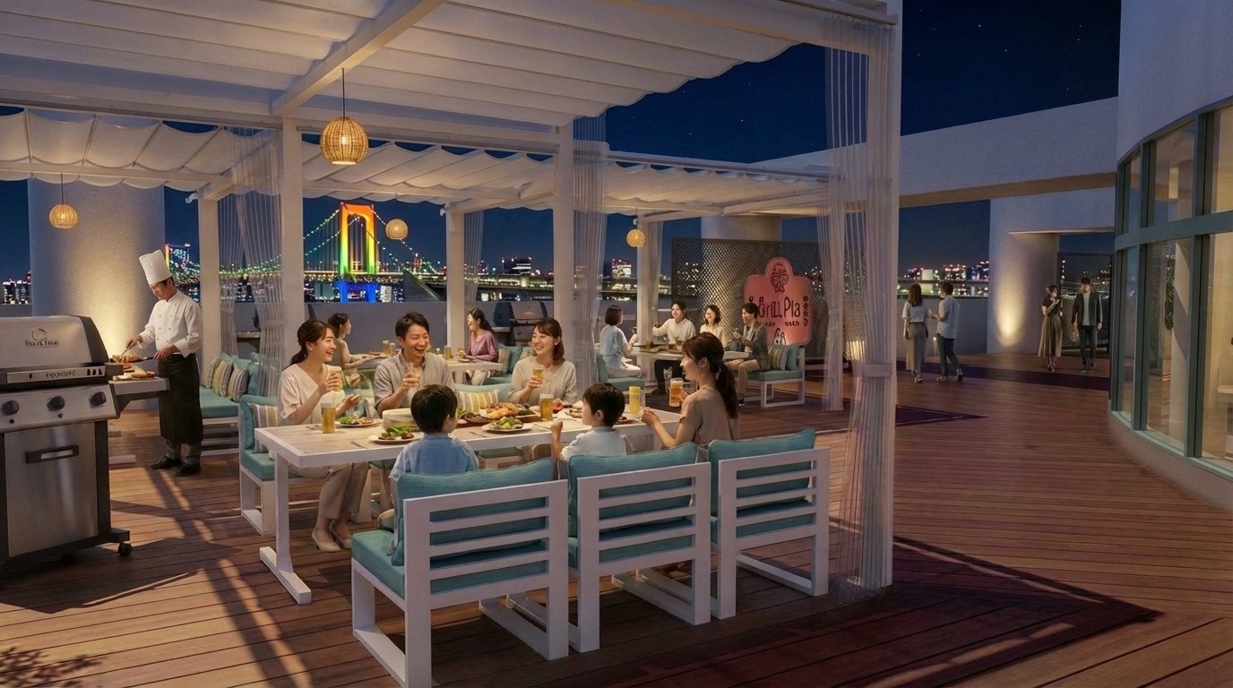 台場駅から徒歩約1分、アクアシティお台場7Fでリニューアルオープン。 東京湾とレインボーブリッジを一望できる絶景の中、3名様から手ぶらで本格BBQを楽しめます。 こだわりの調味料や厳選食材で、ここでしか味わえない特別なBBQ体験をお届けします。